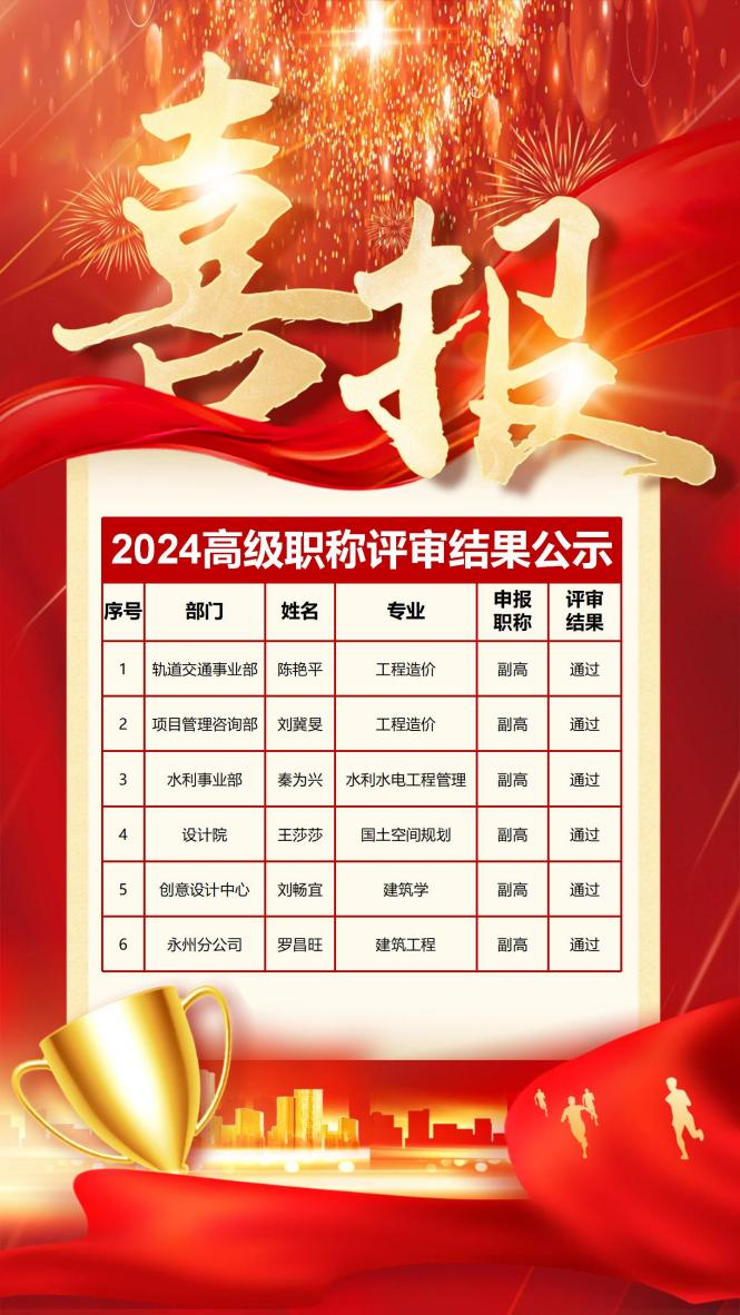 12月24日,湖南省住房和城鄉建設廳發布2024年度土建工程專業高級職稱評審結果,我司陳艷平、劉冀旻、秦為興、王莎莎、劉暢宜及羅昌旺等6位同事通過職稱評審,成功晉升副高。